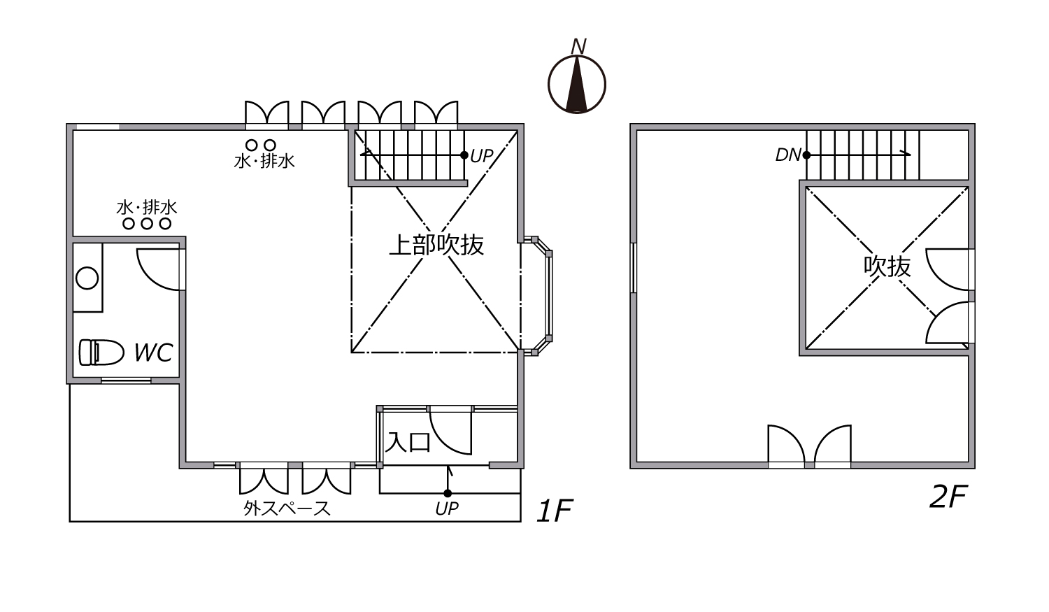 1階:27.74㎡(約8.39坪) 2階:22.35㎡(約6.76坪) 外部スペース:9.07㎡(約2.75坪) |